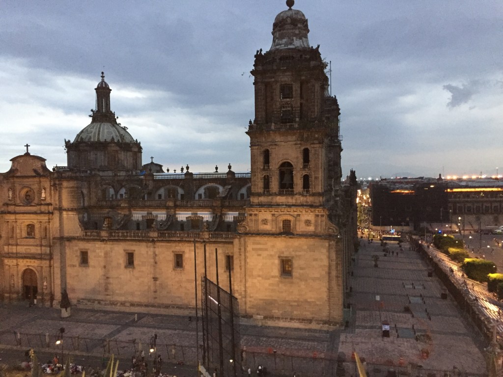 Prior to the colonial period, it was the main ceremonial center in the Aztec city of Tenochtitlan. Lots of people watching opportunities. Families out for a stroll, skateboarders, etc. We had some tapas and drinks and visited the ruins that are right next to the cathedral. Or at least walked around them since they were closed at that time.